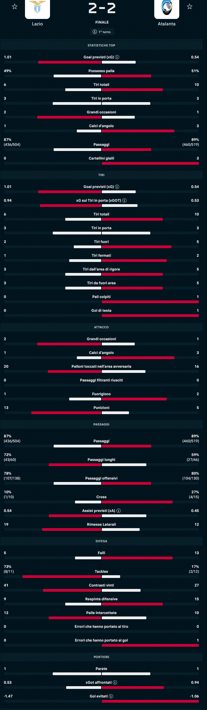 Le statistiche di Lazio - Atalanta