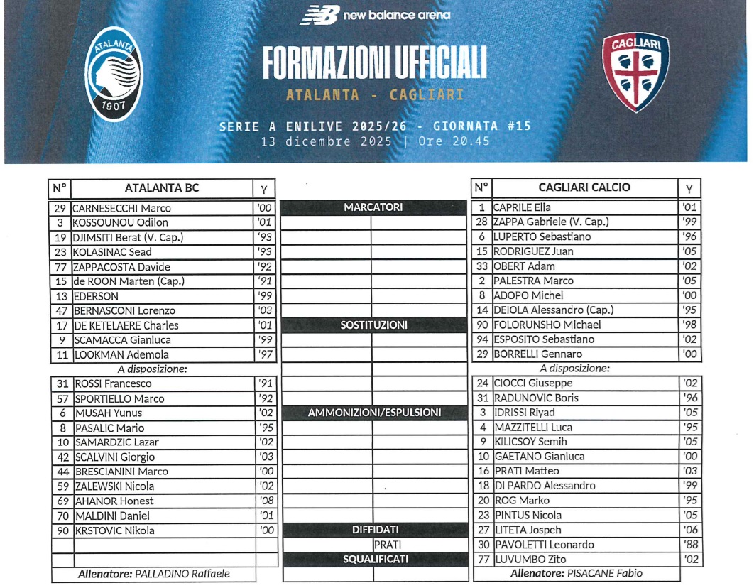 ATALANTA CAGLIARI FORMAZIONI UFFICIALI: COPIA INCOLLA CHELSEA