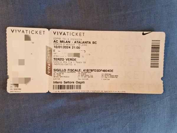 *SETTORE OSPITI MILAN-ATALANTA (Coppa Italia)*: 2.249 biglietti venduti. Dato finale