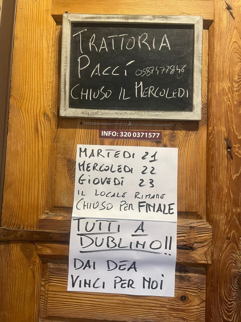 Vi avevamo gia' parlato del gestore ultra atalantino della Trattoria Pacci' di Buti, Pisa (QUI foto e recensioni su Tripadvisor)