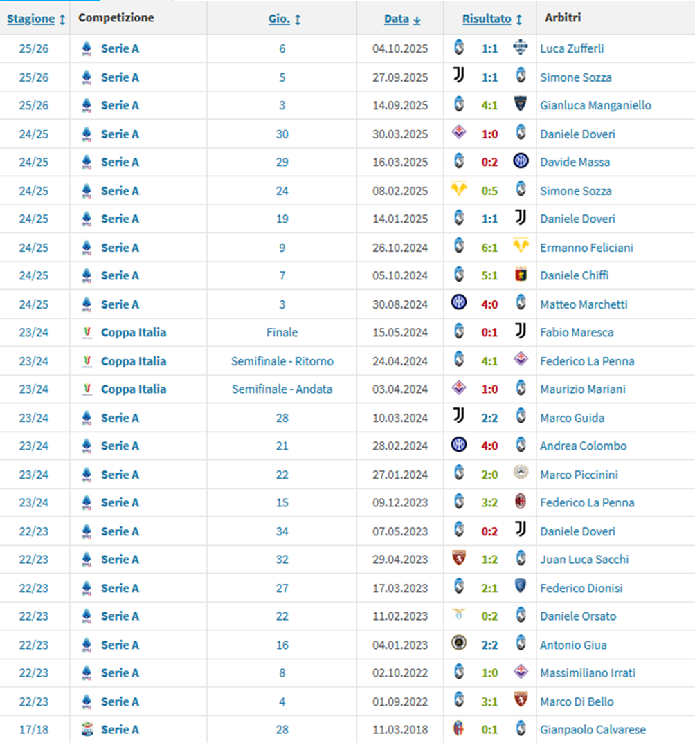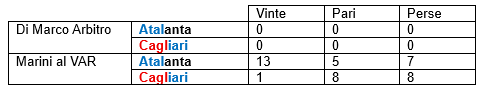 Diversi invece i precedenti per Marini al VAR, questi quelli con l'Atalanta