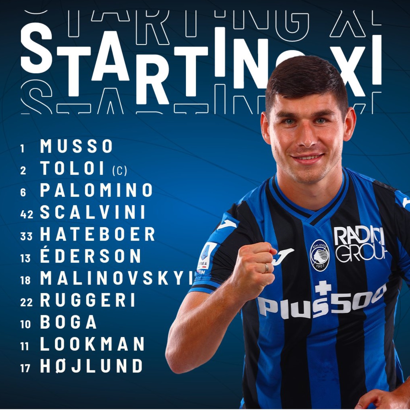 ATALANTA: Musso; Toloi, Palomino, Scalvini; Hateboer, Ederson, Malinovskyi, Ruggeri; Lookman, Hojlund, Boga