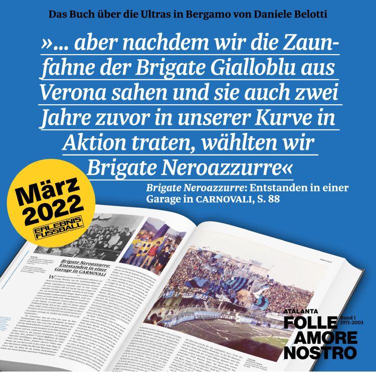 Il primo volume di “Atalanta folle amore nostro” sbarca in Germania nella versione tradotta in tedesco grazie a Stefan Langer di Erlebnis Fussball, rivista del mondo ultras europeo. Sarà l’occasione per far conoscere i primi 30 anni di storia della Curva Nord di Bergamo (dalla nascita dei Commandos nel 1971 ai Supporters dei primi anni 2000) ai tifosi tedeschi.