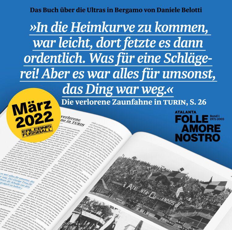 Il primo volume di “Atalanta folle amore nostro” sbarca in Germania nella versione tradotta in tedesco grazie a Stefan Langer di Erlebnis Fussball, rivista del mondo ultras europeo. Sarà l’occasione per far conoscere i primi 30 anni di storia della Curva Nord di Bergamo (dalla nascita dei Commandos nel 1971 ai Supporters dei primi anni 2000) ai tifosi tedeschi.