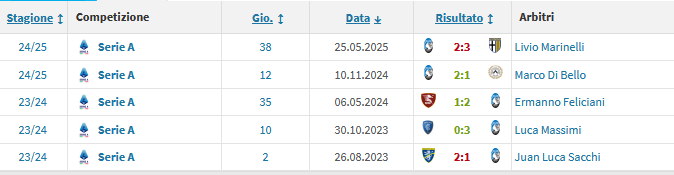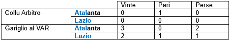 Un solo precedente con Collu per l'Atalanta (lo 0-0 col Venezia lo scorso anno) e nessuno con la Lazio.