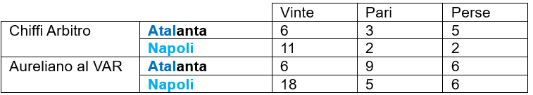 Ventuno le precedenti apparizioni di Aureliano in Sala VAR con l'Atalanta, qui elencate: