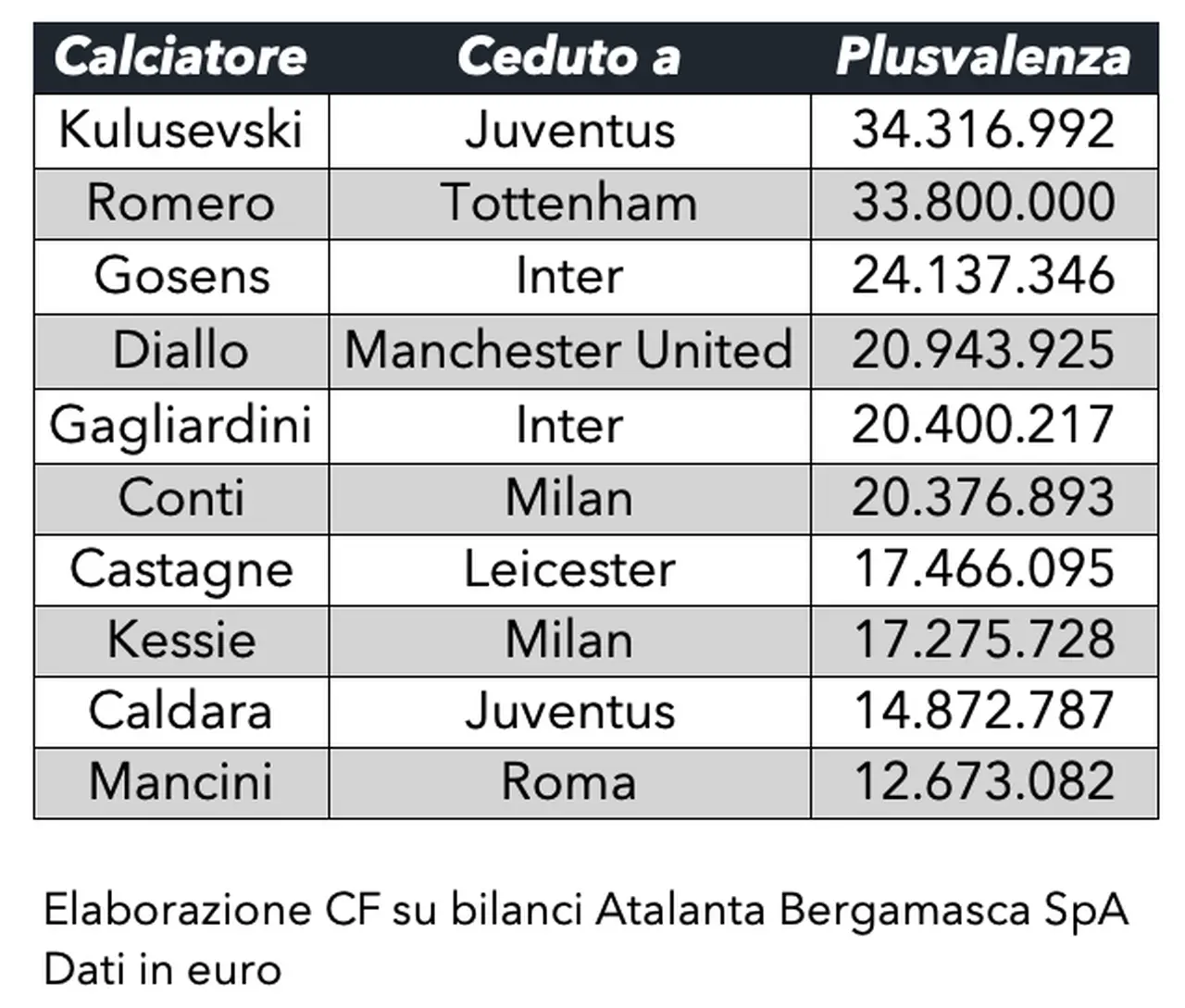 Quella fatta registrare con la cessione di Romero è la seconda maggiore plusvalenza della storia in casa Atalanta. Il difensore argentino è secondo solo a Dejan Kulusevski in questa particolare classifica: lo svedese supera i 34,3 milioni di euro. Sul podio anche la cessione del tedesco Robin Gosens all’Inter, che ha generato una plusvalenza di 24,1 milioni di euro.