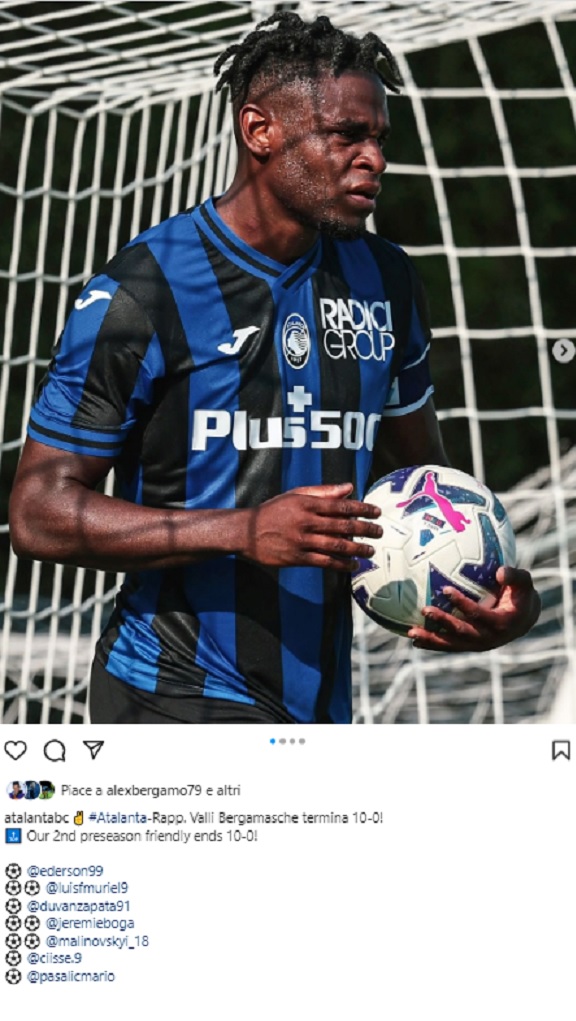 13/07/2022 | 19.31 28 Atalanta - Rappresentativa valli bergamasche 10-0 Finisce 10-0 la sgambata con la rappresentativa delle valli, in rete Ederson, Muriel (2), Zapata, Boga (2) Malinovslyi (2) Cisse' e Pasalic By brignuca