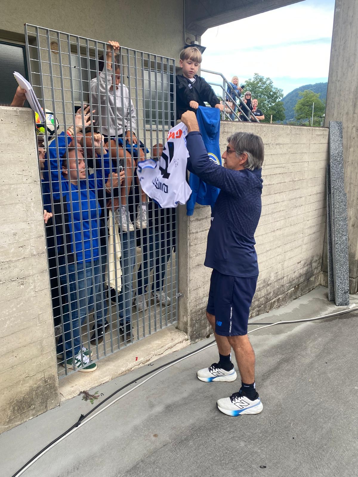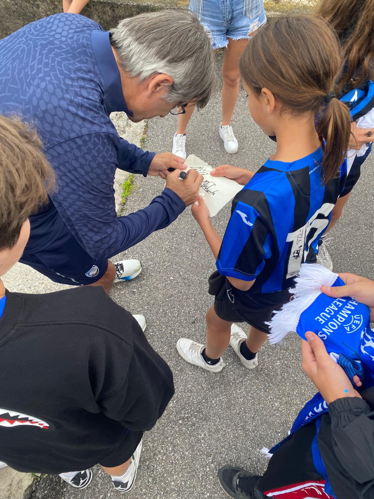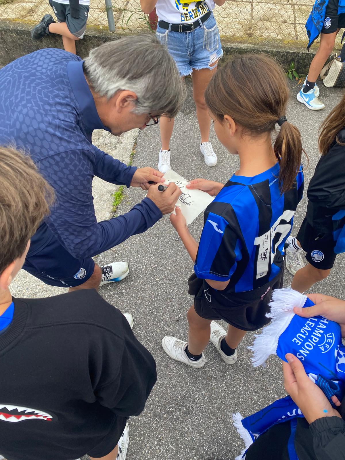 Dopo la partita, il mister, acclamatissimo, si e' concesso alle richieste d' autografo dei numerosi presenti