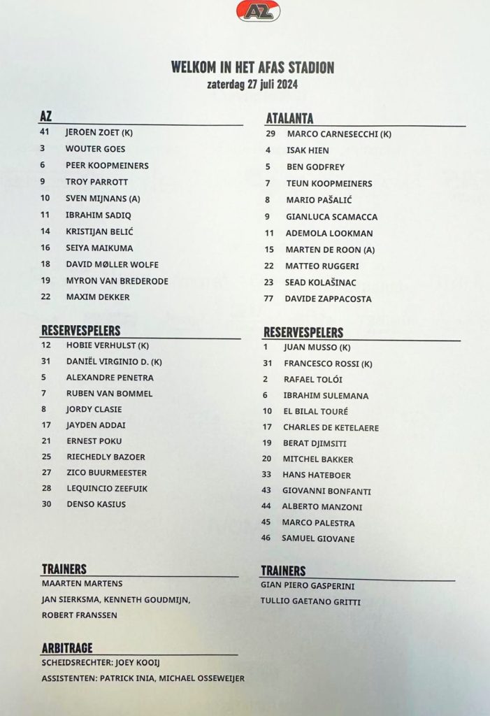 E' la squadra nella quale e' cresciuto e da dove lo abbiamo preso Teun Koopmeiners e che abbiamo incontrato, a Bergamo e perdendo 1-0, in un altra amichevole nel novembre '22 durante i mondiali qatarioti.