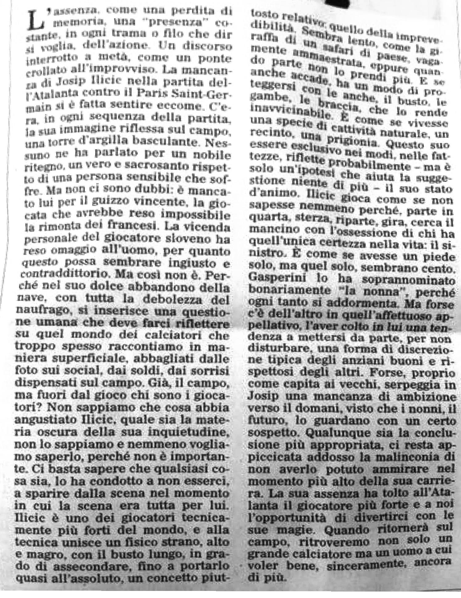 Bel pezzo su Ilicic de "Il Foglio" (1)