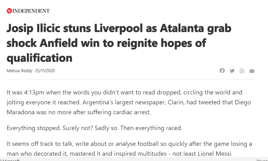 “Liverpool 0-2 Atalanta: Josip Ilicic and Robin Gosens on target as Reds suffer rude awakening”