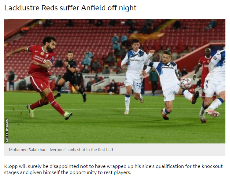 (Per la prima volta da quando Opta ha iniziato a registrare i dati in Champions League nel 2003-04, il Liverpool non è riuscito a tentare nemmeno un tiro in porta in una partita casalinga della competizione)