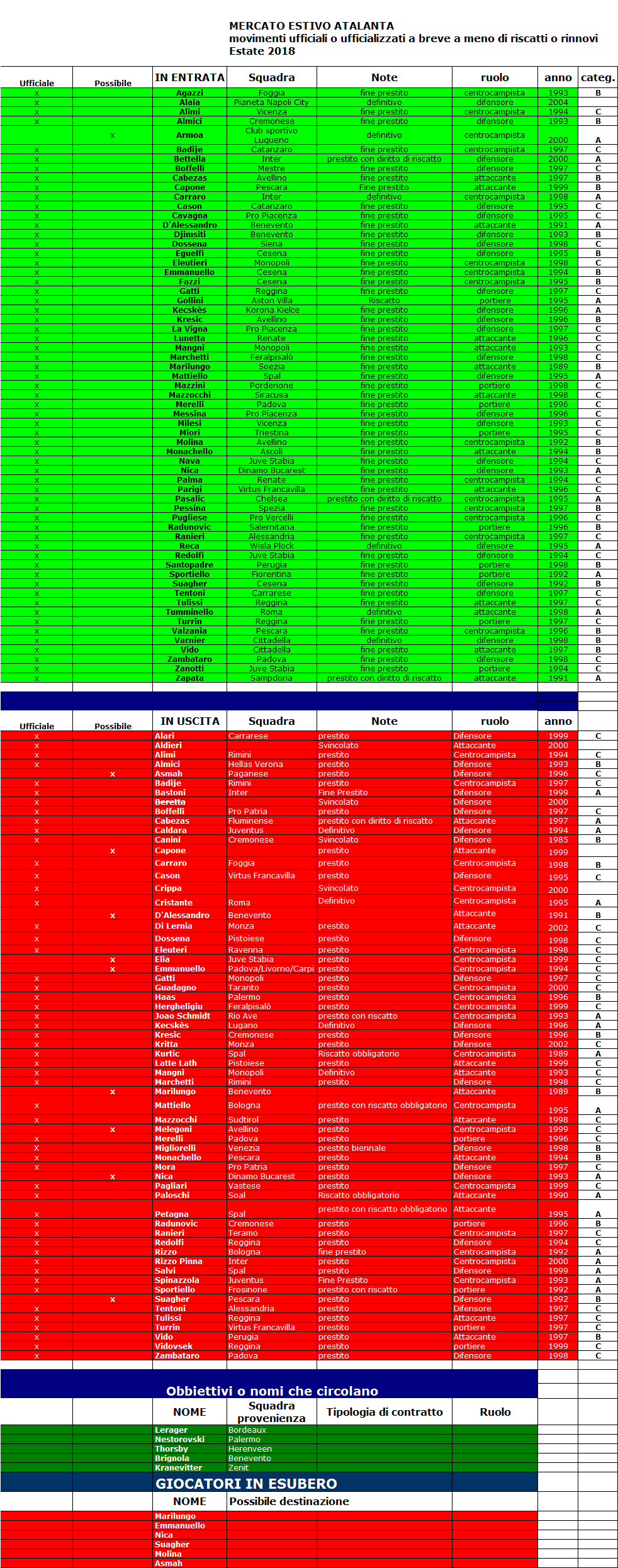 Mai come compilando la situazione di tutti i giocatori legati a qualsiasi titolo all'Atalanta si riesce a capire quale mole di lavoro burocratico, amministrativo e tecnico ci sia dietro i muri della sede di Zingonia.