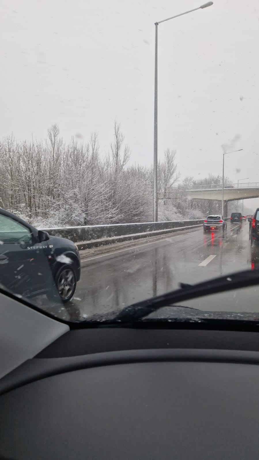 Lo stadio di Bruges dove giocheremo domani sotto la neve e una ripresa da una strada nei paraggi