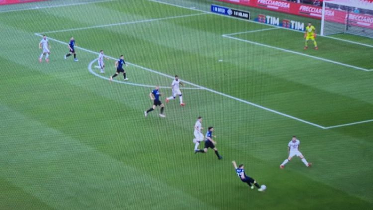 Ci e' arrivato fotogramma del primo gol dell'Inter sabato, Lautaro su tocco di Barella.