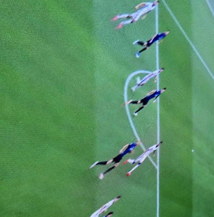 Cosi' abbiamo deciso di eliminare la prospettiva, cioe' mettendo tutte le righe (quelle di gesso e quelle dovute al taglio dell'erba) perpendicolari e parallele per quanto possibile. Questo il risultato, cosa ne dite?