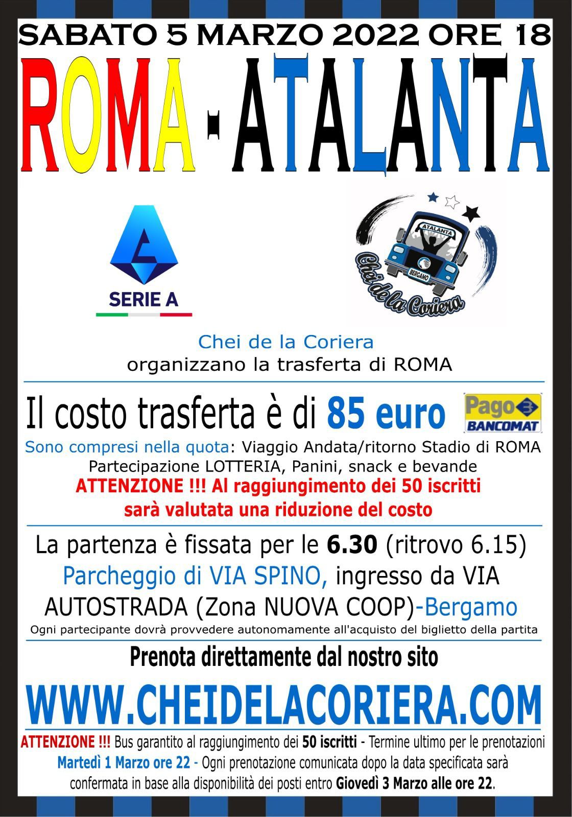 Chei de la Coriera: info trasferta Roma e altro