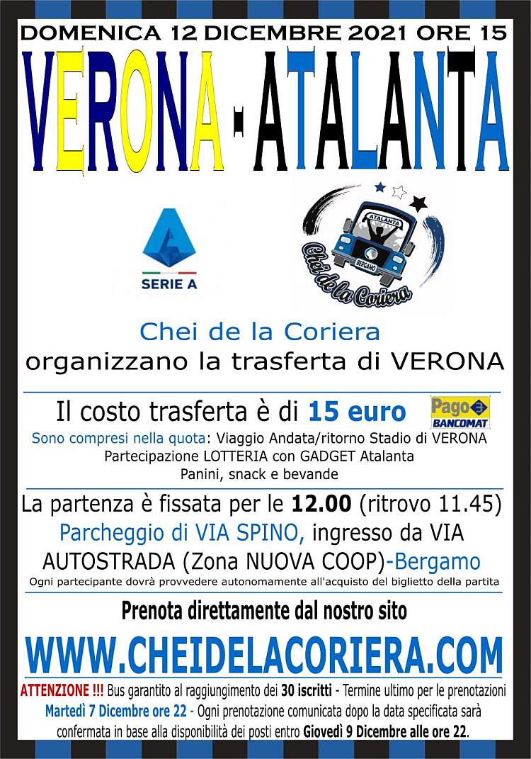 Per Verona-Atalanta c’è già stata una buonissima risposta verso la proposta de Chei De La Coriera, chi volesse prendere gli ultimi posti prenoti da qui: https://www.cheidelacoriera.com/trasferta/hellas-verona-atalanta-serie-a-2021-12-12-bus/details