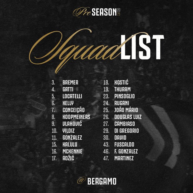 Di seguito i giocatori a disposizione di Igor Tudor in vista della trasferta sul campo della formazione orobica come riportato da juventus.com