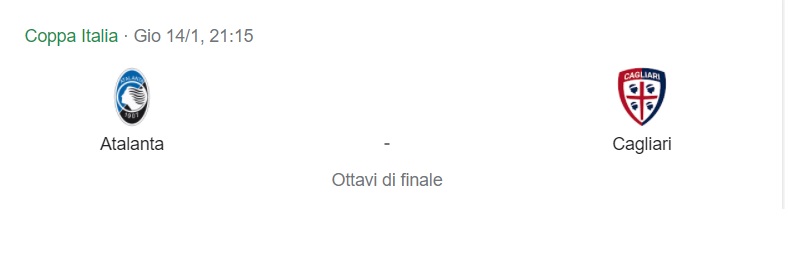 Atalanta - Cagliari (14/1 h 21.15 Raidue)