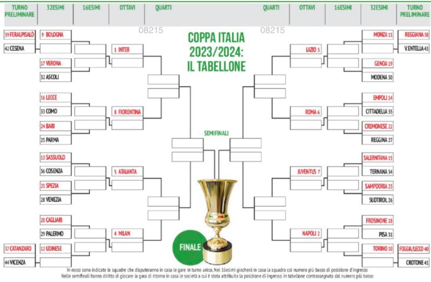 Tabellone Coppa Italia 2023 2024 – La data della finale