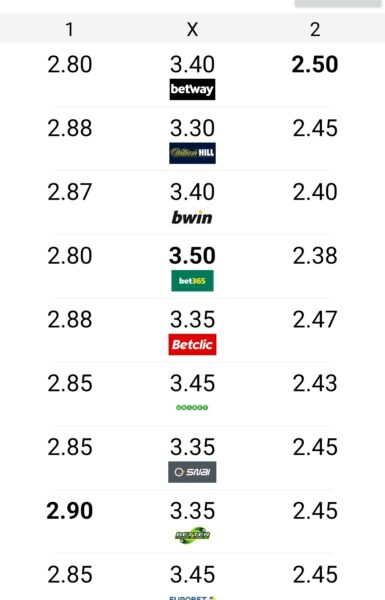 Dopo la doppia sconfitta con Cagliari e Fiorentina è il momento della "vecchia signora" a Bergamo, questa volta le quote ci danno sfavoriti ( magari va bene ne...) ma tutte e 3 le quote praticamente identiche ci fanno capire che ce la giochiamo...forza ragazzi!