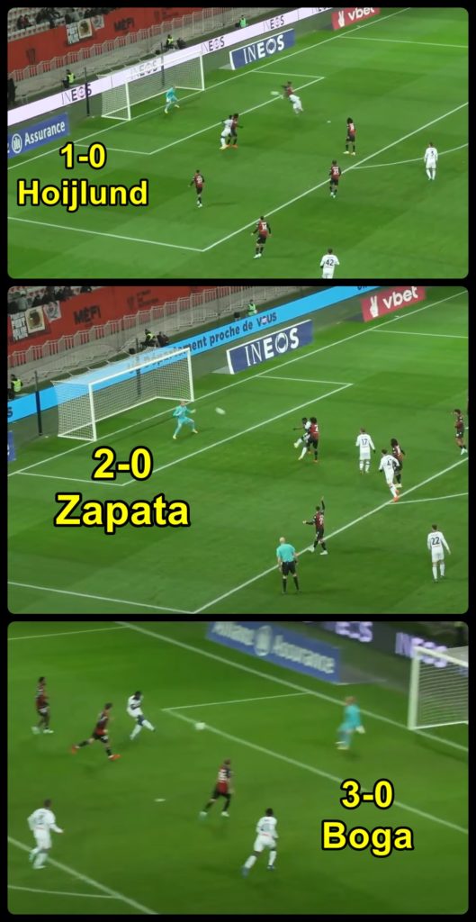 Marcatori: 18′ pt Højlund (A), 22′ pt Zapata (A); 47′ st Boga (A)