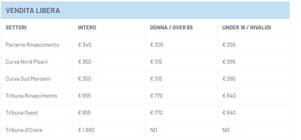 ECCO I PREZZI DEGLI ABBONAMENTI 2025-26 VALIDI PER 20 PARTITE