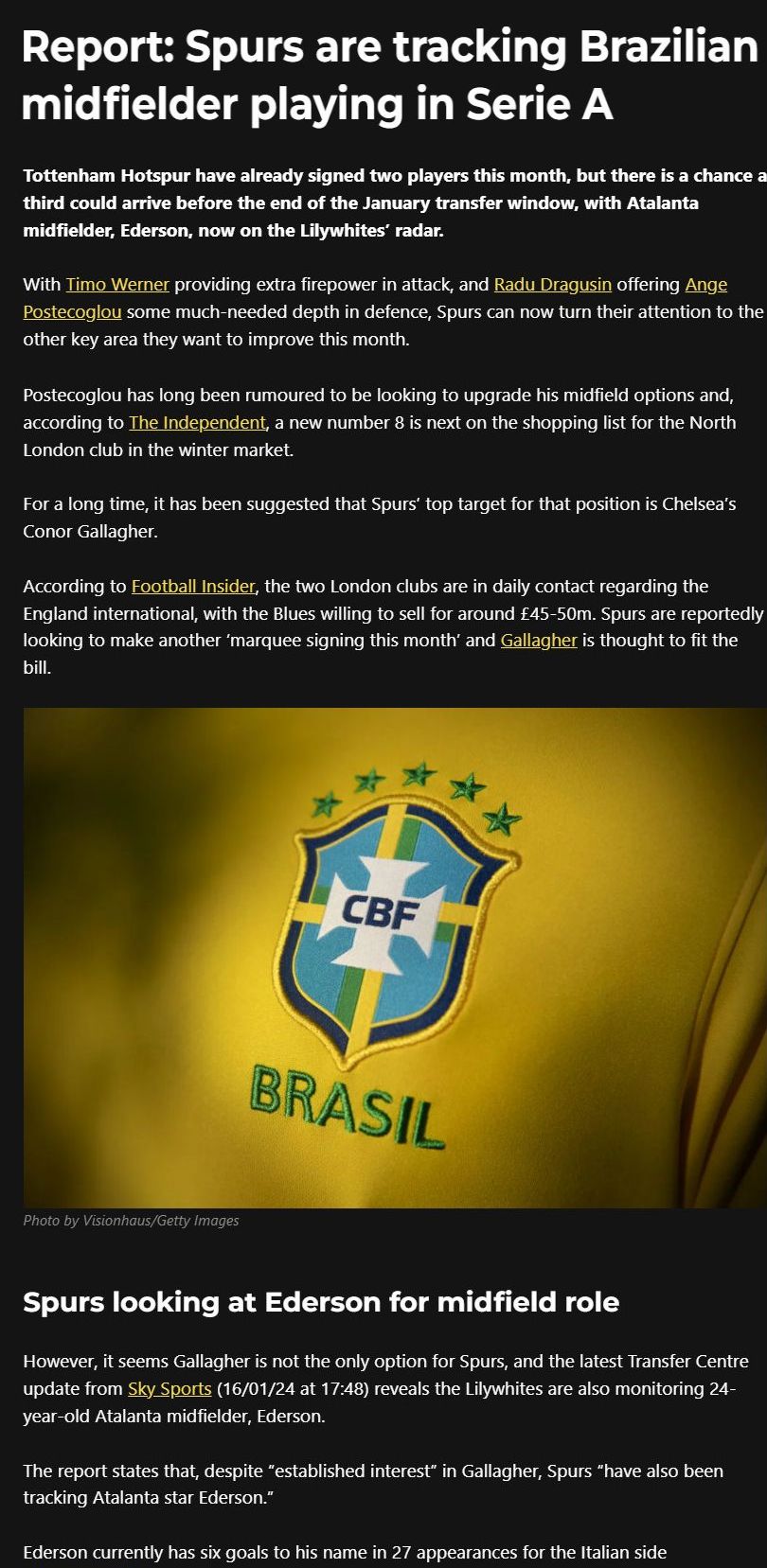 Se ne parla specie sui siti che seguono il Tottenham e il Newcastle, due clubs dalla potenza di fuoco importante (soldi) e che vi riportiamo qui sotto.