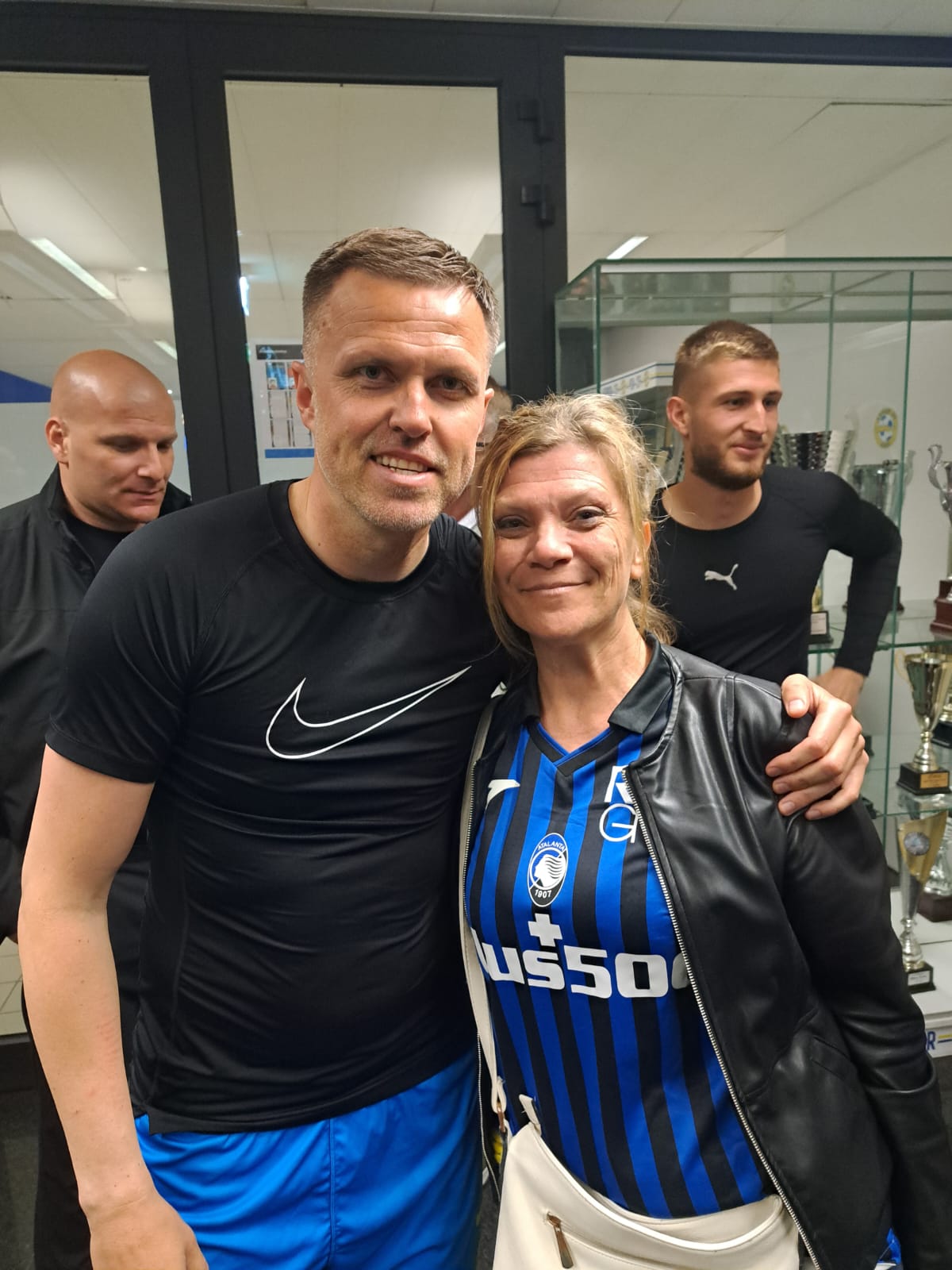 Foto e video sono qui sotto e dicono gia' tutto loro. Ci e' spiaciuto non riuscire a fermare per piu' tempo il nostro grandissimo ex campione ma son pur sempre una squadra professionistica e lo aspettavano per tornare in sede tutti insieme.