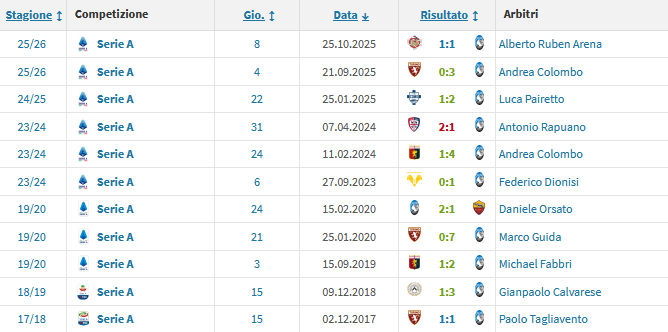 30/12/2025 | 13.54 4 Fabbri arbitra Atalanta - Roma, VAR Maresca (aggiornato con precedenti) ATALANTA-ROMA Sabato 3 gennaio h. 20.45 FABBRICECCONI – BERCIGLIIV: ZUFFERLIVAR: MARESCAAVAR: DI PAOLOIl bilancio della squadra arbitrale con le due squadre è il seguente: Questi i precedenti di Fabbri con l'AtalantaQuesti quelli di Maresca al VAR By marcodalmen
