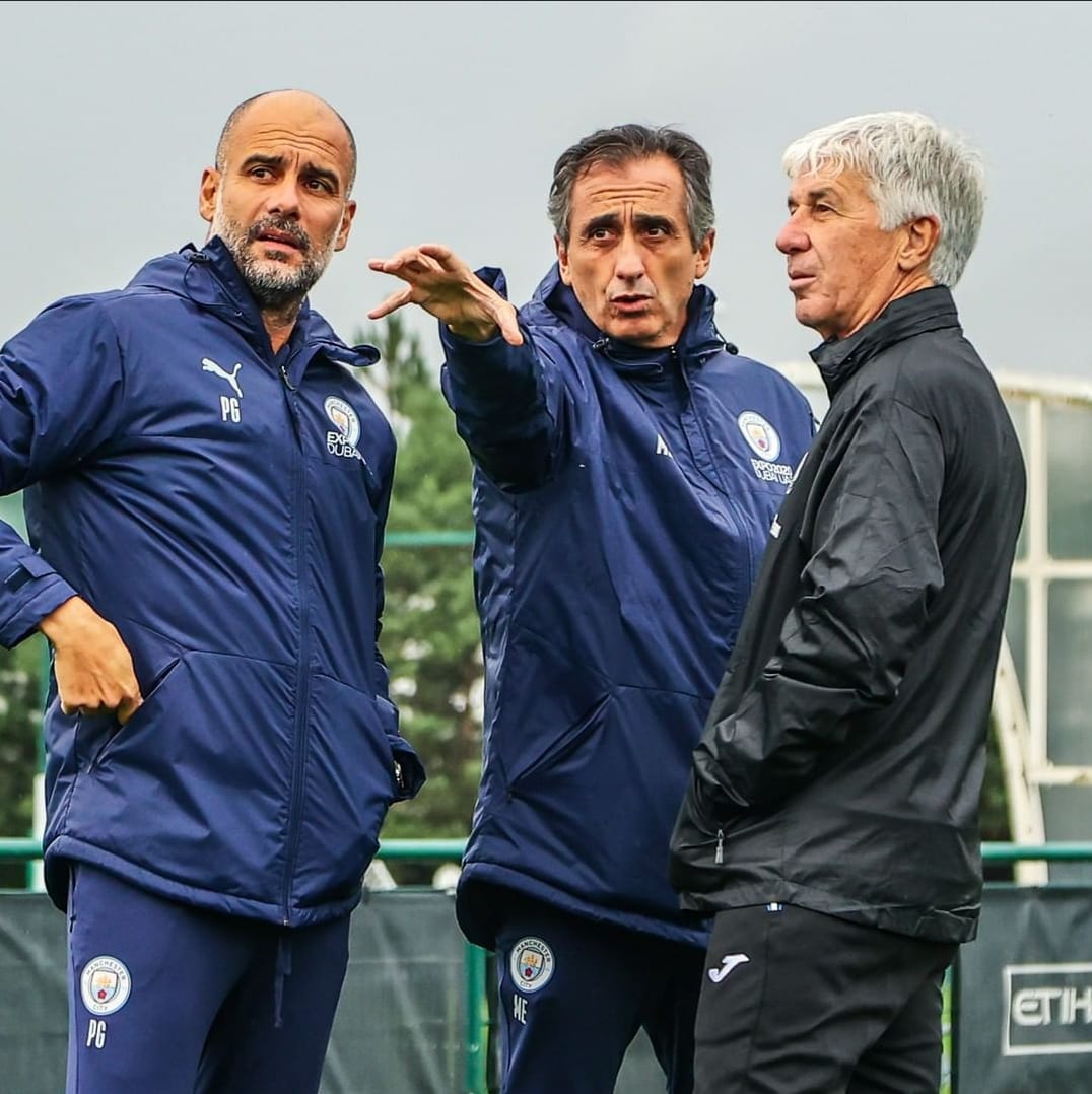 Ospitati nel centro sportivo del City, Gasperini a colloquio con Guardiola. Foto e video
