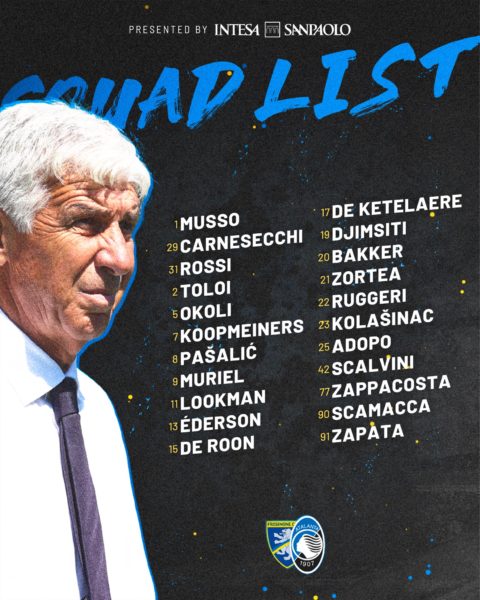 Sono 22 i calciatori convocati da mister Gian Piero Gasperini per Frosinone-Atalanta, gara della 2ª giornata della Serie A TIM 2023-2024 in programma sabato alle 18.30 allo stadio Benito Stirpe di Frosinone: