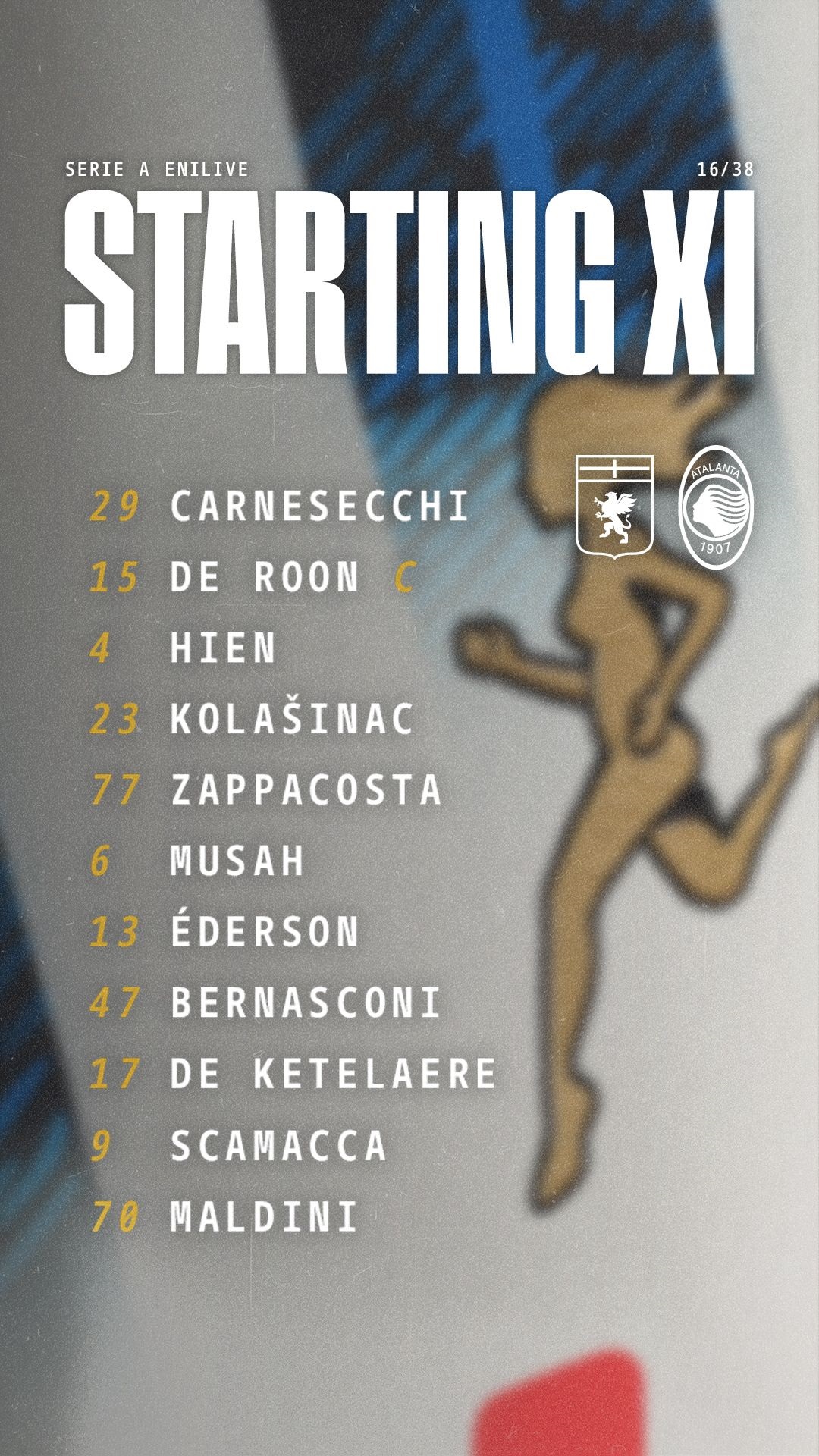 GENOA ATALANTA FORMAZIONI UFFICIALI: DE ROON A DESTRA IN DIFESA, MUSAH A CENTROCAMPO, MALDINI DAVANTI