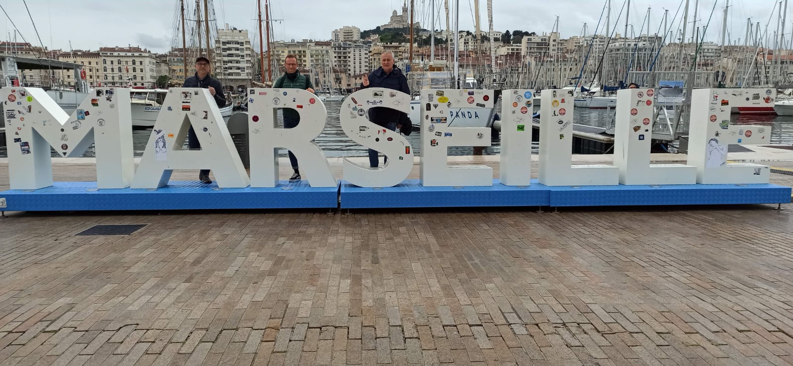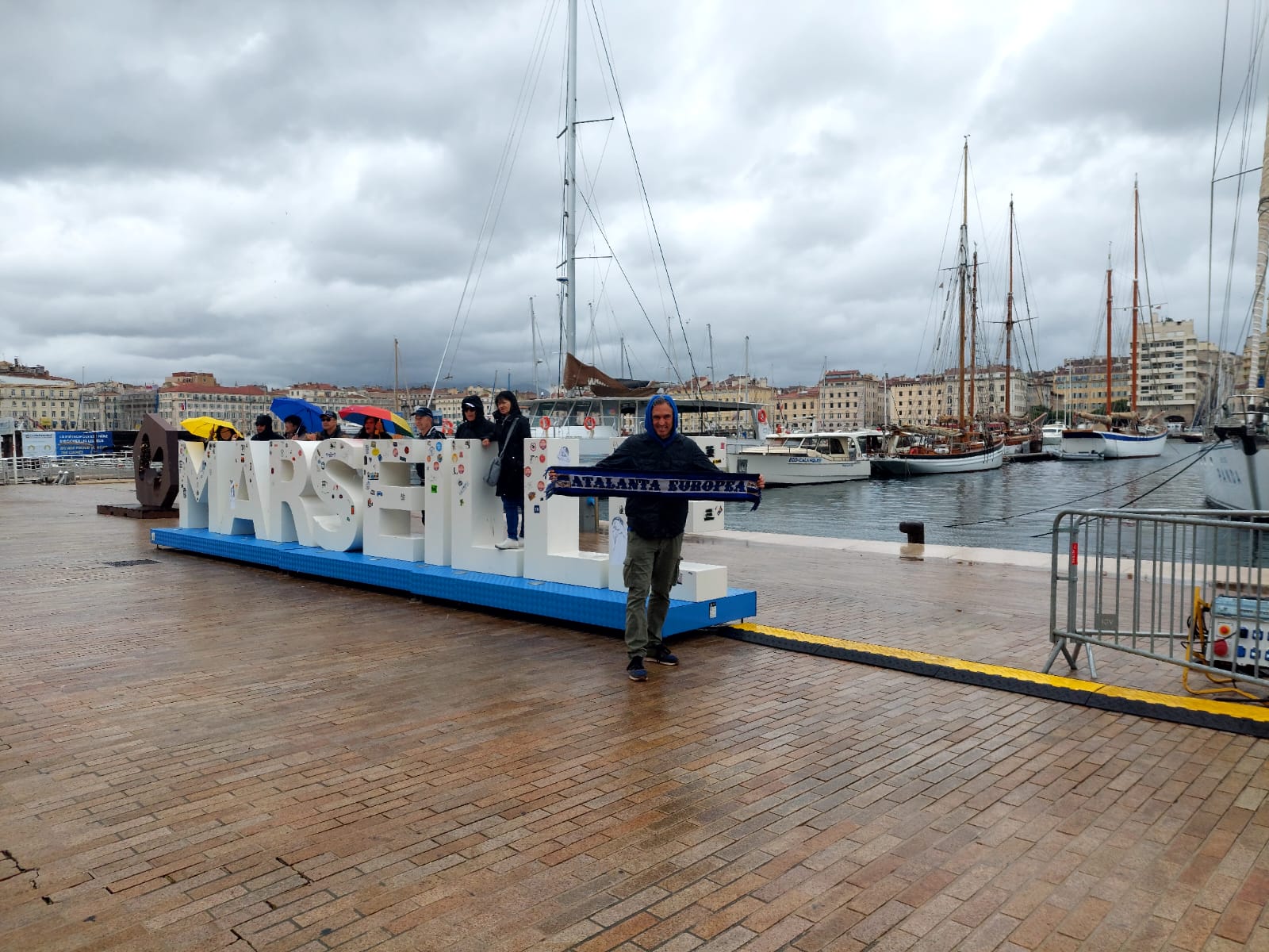Stanno confluendo nella citta' francese i nostri tifosi, eccone alcuni al famoso porto marsigliese davanti alla scritta della citta'