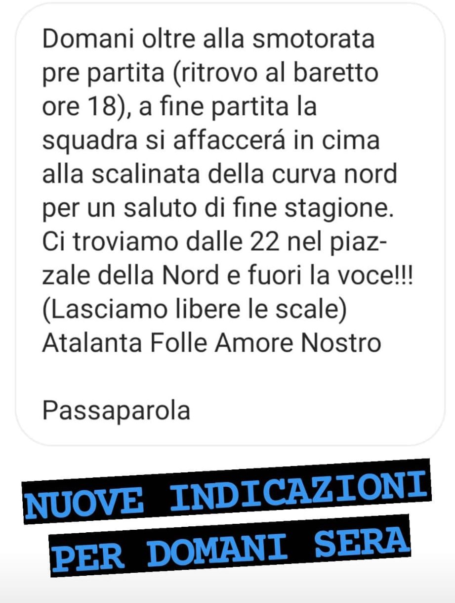 Gira in Rete che la squadra domani salutera' i tifosi dagli spalti