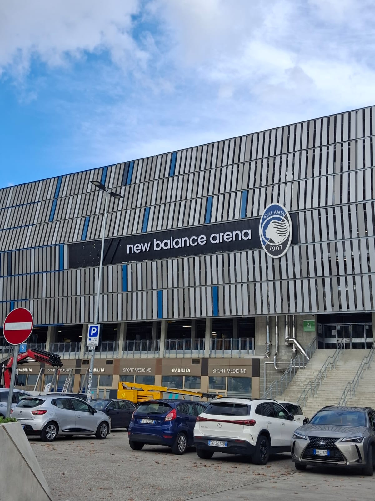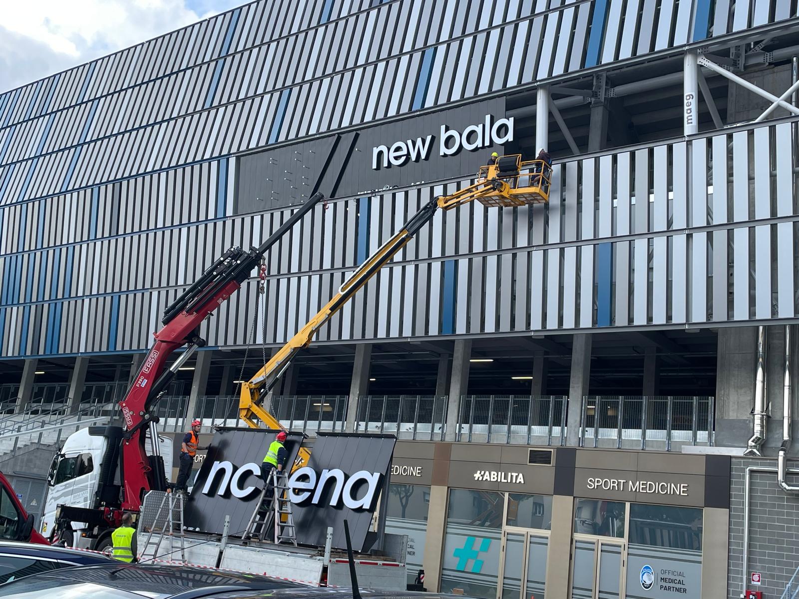 E New Balance Arena sia. Ecco il montaggio della nuova insegna allo stadio.