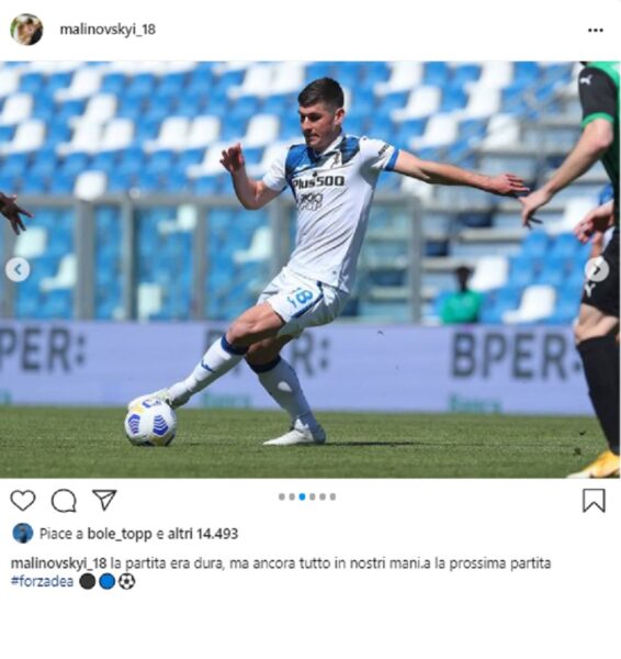 Das Instagram una immagine riassuntiva e quanto pubblicato da Djimsiti, Romero, Malinovskyi, Freuler e Gosens