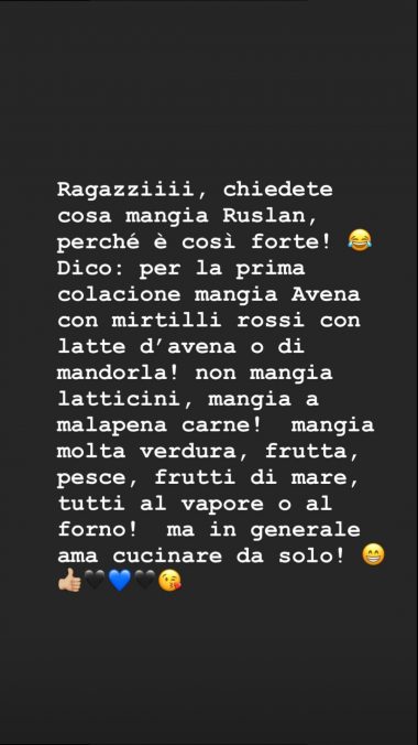 Potrebbe essere l'alimentazione come spiega la moglie Roksana su instagram: