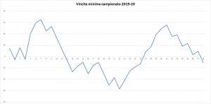 Anche in questo caso il picco massimo si riscontra dopo il match con la Sampdoria a quota 42,5€ per poi scendere e oscillare dal match pareggiato a Torino con la Juventus e la chiusura a 24,8€