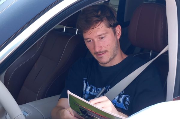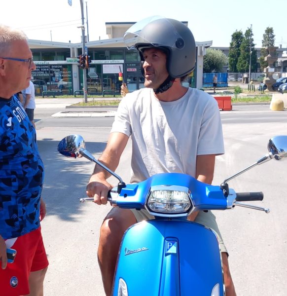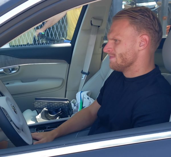 12:45 Chiude la fila Francesco Rossi, appena finite le visite mediche. Squadra al completo e diretta a pranzo sui pulmini