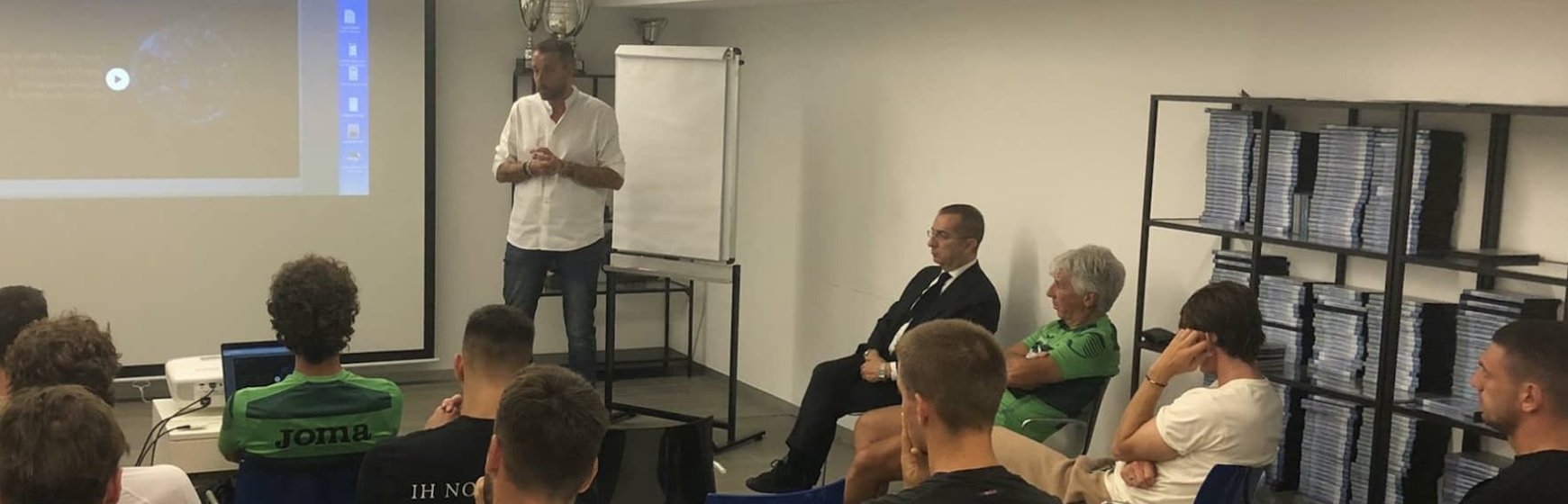 Ospite questa mattina al Centro Bortolotti di Zingonia Paolo Mazzoleni, arbitro VMO (Video Match Official) della Commissione Arbitri Nazionale Serie A e B, che ha tenuto un incontro formativo con giocatori e staff tecnico della prima squadra per spiegare e chiarire tutti gli aspetti regolamentari, illustrando tramite video e slide i casi più dubbi e di difficile interpretazione.
