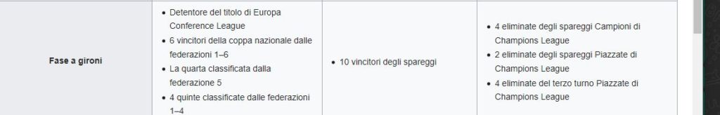 Ai gironi accedono in totale 32 squadre, alcune qualificate di diritto, alcune tramite i preliminari e alcune eliminate dalla Champions: ecco il prospetto completo.