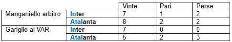 Inter - Atalanta: arbitra Manganiello, VAR Gariglio (aggiornato con precedenti)