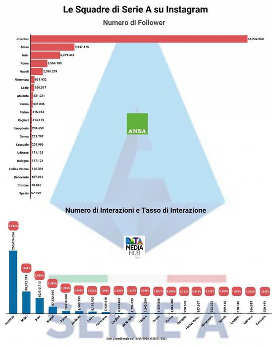Interessanti statistiche sulle squadre di A e i social. Ecco due grafici