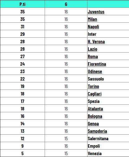 Chiestaci da diversi ecco la classifica del solo girone di ritorno aggiornata ad oggi