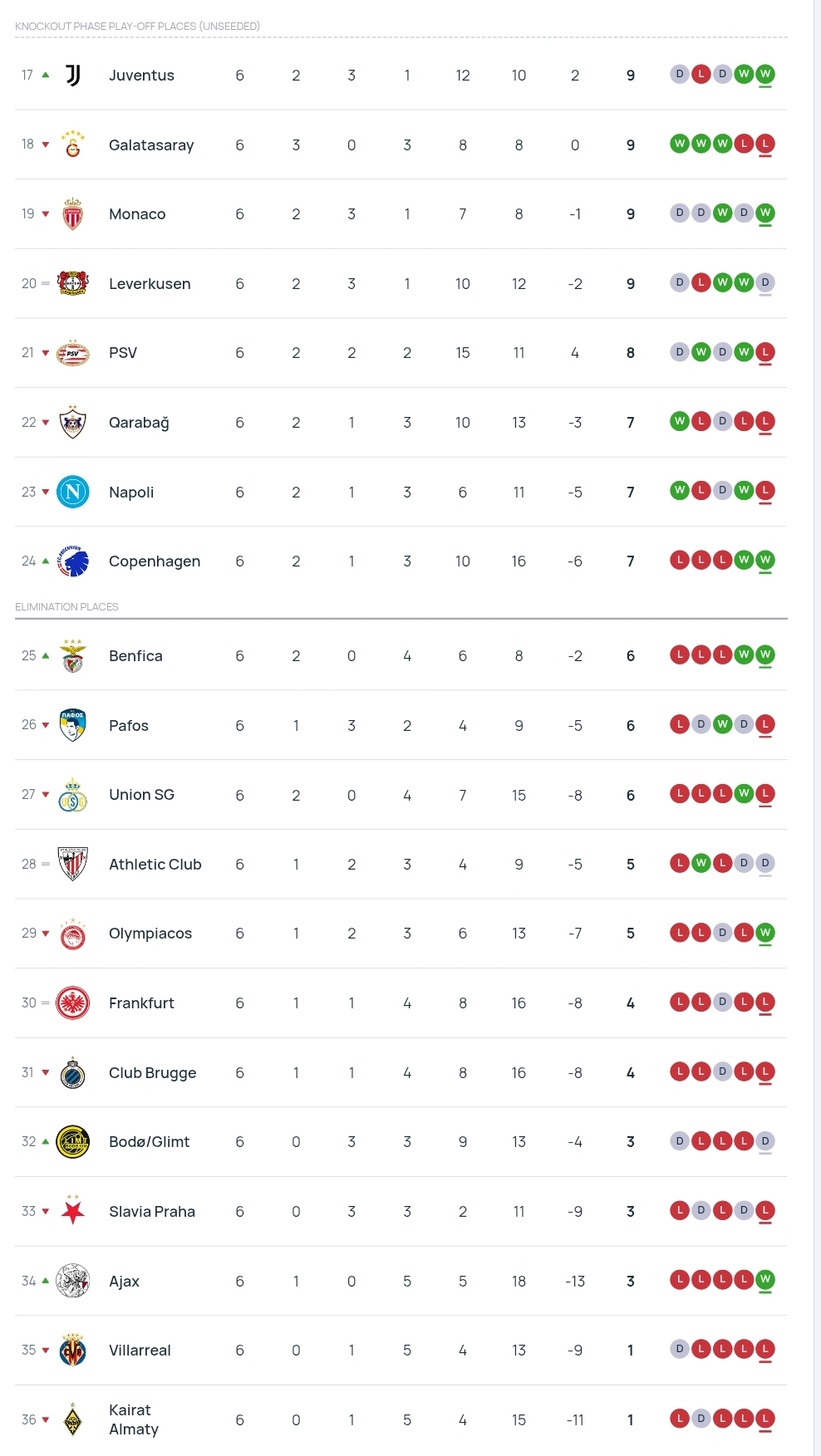 La classifica di Champions dopo 6 turni: matematicamente nelle prime 24!