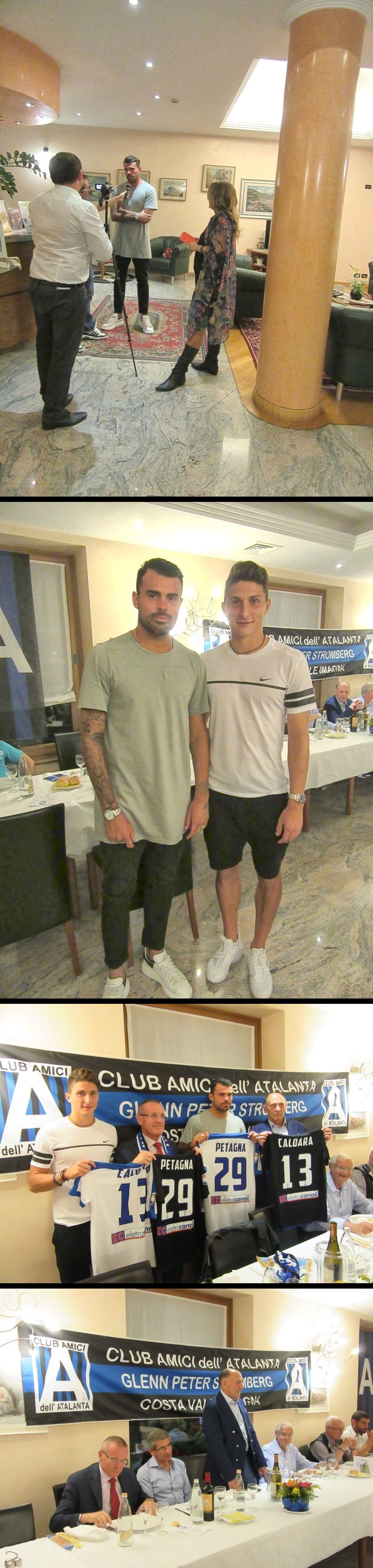 Presente per la Societa' nero-azzurra la sig.ra Elisa Persico, che ha introdotto alla platea i due giovani Neo-atalantini Caldara e Petagna. I quali, di buon grado, si sono prestati nel dopo-cena alla corveé dei rituali autografi e selfies, cosa ovviamente molte gradita dai tifosi.