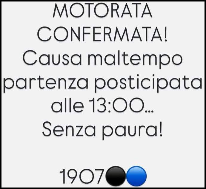 Rinviata di un paio d'ore causa maltempo che comunque volge al bello. Come sempre si partira' dal Baretto.